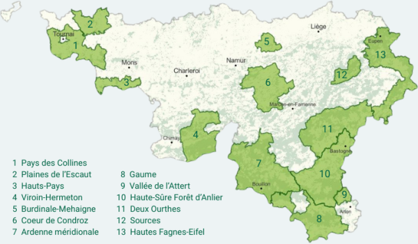 Actuellement, il existe 13 Parcs naturels en Wallonie.