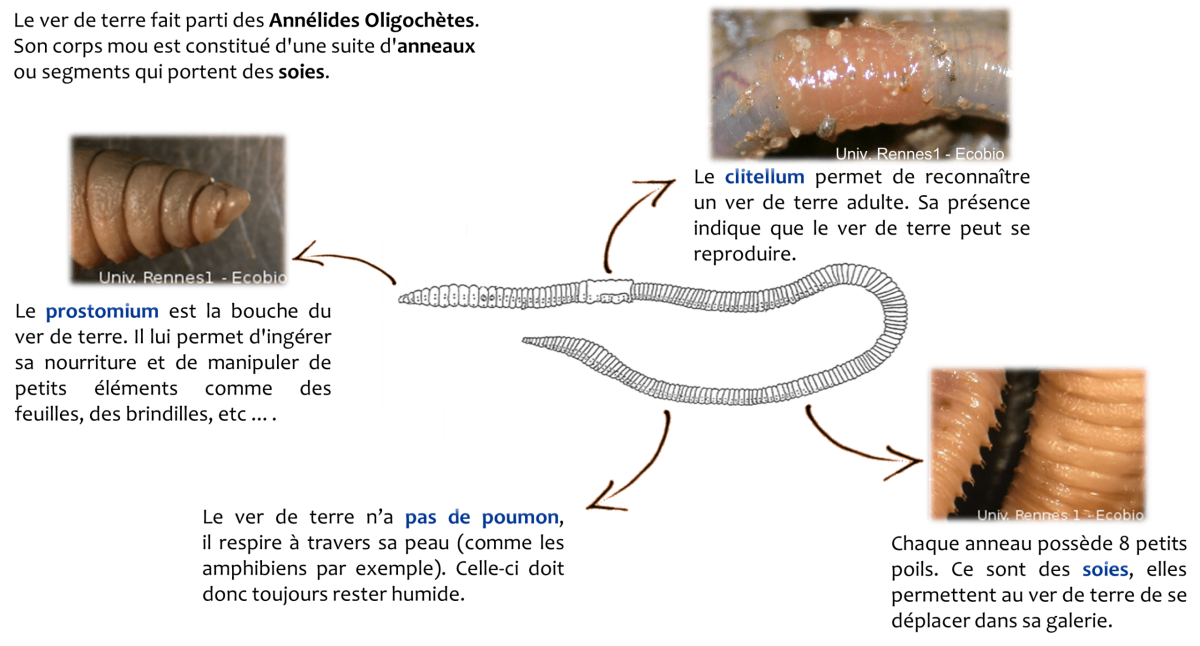 Les vers de terre, ou lombrics, appartiennent à l’embranchement des annélides, des animaux au corps allongé et cylindrique, formé d’anneaux munis de soies microscopiques qui leur permettent de se déplacer dans la terre.